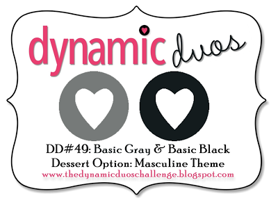 The color challenge at Dynamic Duos this week is Basic Black and Basic Gray, with a dessert option of a masculine card. I thought these colors would work nicely with the sketch challenge at Sketch Frenzy Friday, which was a color-blocking card.