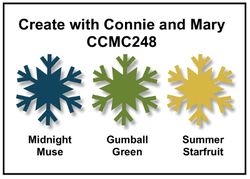 When I first saw the sketch at Freshly Made Sketches, I wasn't sure how I was going to make the rectangle at the top work. But then I decided to use the colors from Create with Connie & Mary and it all seemed to fall into place. Initially, I had the white panel as a flag, but then I rounded the bottom corner using my 2 1/2" circle punch and it looked much better.